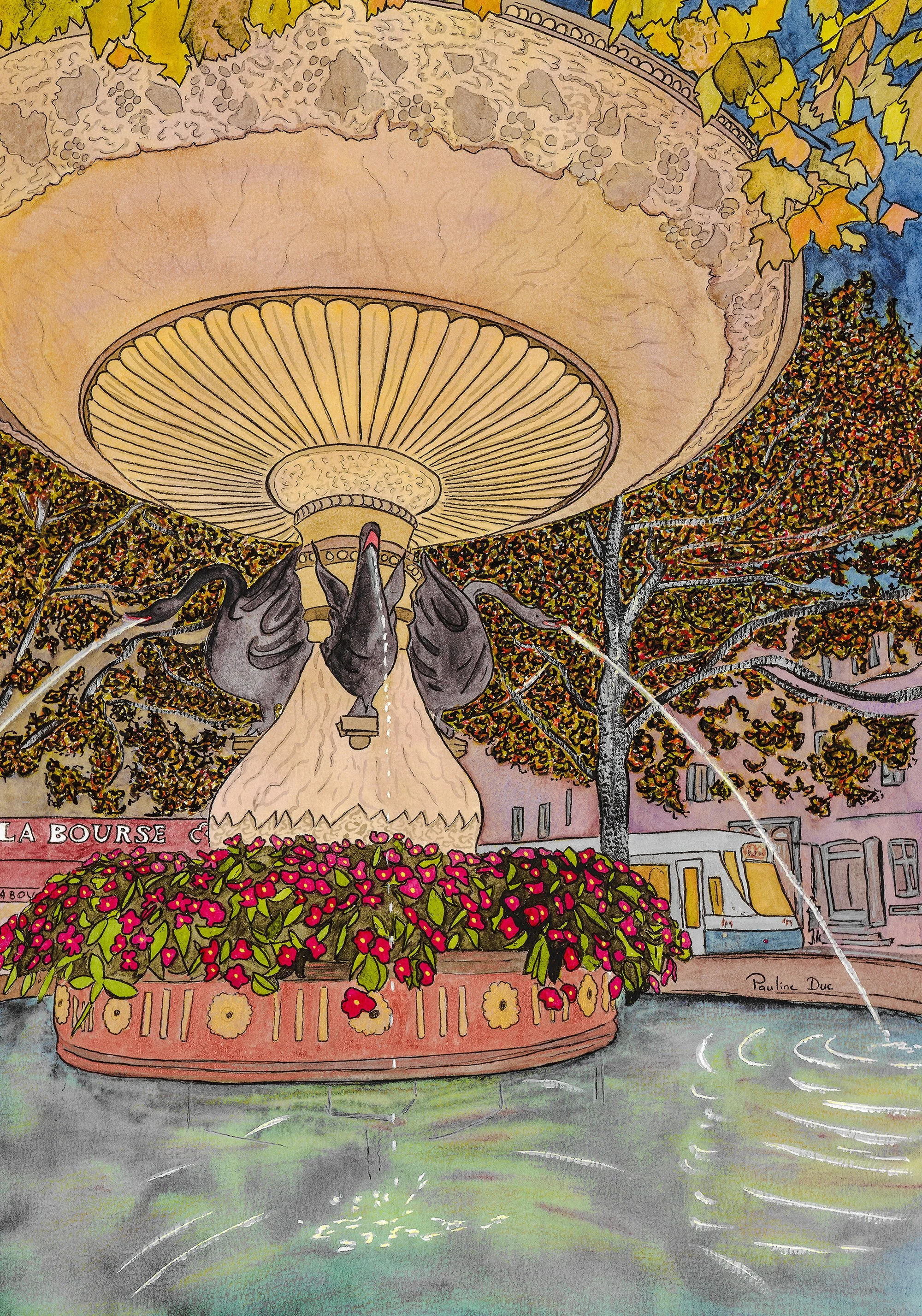 Depuis, je n’ai plus lâché le pinceau et je me plais à travailler des paysages ou des compositions fleuries à la peinture acrylique ou à l’aquarelle. J’adore danser avec les couleurs et Carouge est la meilleure source d’inspiration qu’il m’ait été donné de trouver pour cet exercice.